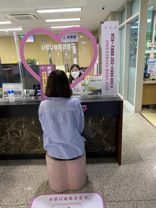 ‘»ç¶û³ª´® ¹è·Áⱸ’´Â ¹Î¿øÀεéÀÌ ½±°Ô ±¸º°ÇÒ ¼ö ÀÖµµ·Ï ¾È³»Ç¥Áö ½ºÆ¼Ä¿°¡ ºÎÂøµÅ ÀÖÀ¸¸ç ÀÓ»êºÎ¿Í À¯¾Æ µ¿¹Ý ¹Î¿øÀÎ, ³ë¾àÀÚ, Àå¾ÖÀÎ µî µµ¿òÀÌ ÇÊ¿äÇÑ ´ë»óÀÚ°¡ ¹æ¹®ÇÒ °æ¿ì ´ë±â ¼ø¼¿Í »ó°ü¾øÀÌ ¿ì¼±ÀûÀ¸·Î ¾÷¹«¸¦ ó¸®ÇÑ´Ù.
