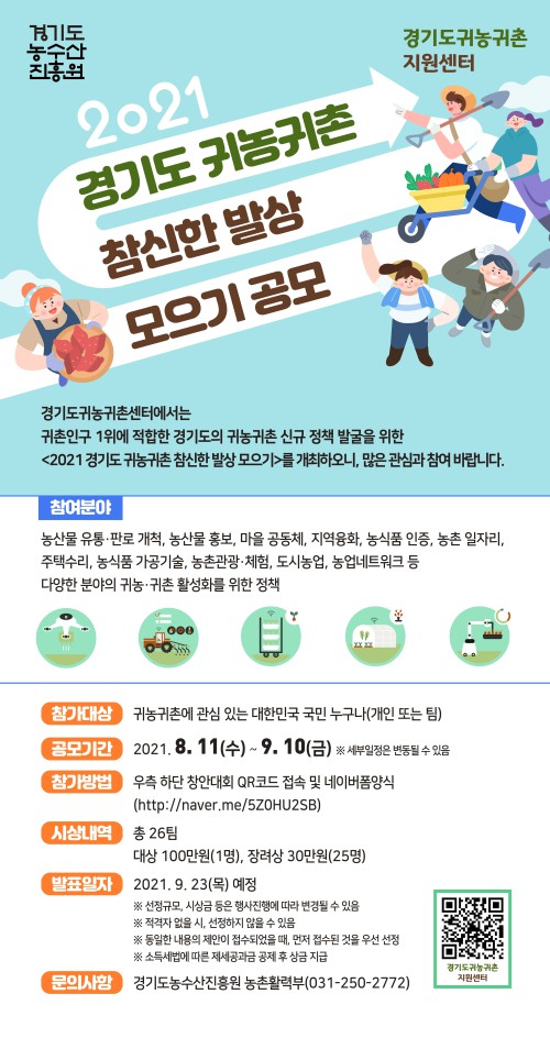 °æ±âµµ¿Í °æ±âµµ³ó¼ö»êÁøÈï¿øÀÌ ‘2021 °æ±âµµ ±Í³ó·±ÍÃÌ Âü½ÅÇÑ ¹ß»ó ¸ðÀ¸±â’¸¦ ¿°í 9¿ù 10ÀϱîÁö ³»³âµµ Á¤Ã¥ ¹ß±¼ ¾ÆÀ̵ð¾î¸¦ °ø¸ðÇÑ´Ù.