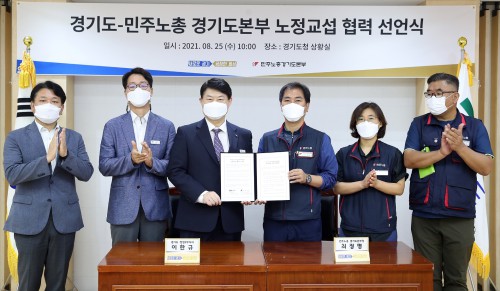 ÀÌÇÑ±Ô °æ±âµµ ÇàÁ¤2ºÎÁö»ç¿Í ÃÖÁ¤¸í ¹ÎÁÖ³ëÃÑ °æ±âµµº»ºÎÀåÀº 25ÀÏ °æ±âµµÃ»¿¡¼ ‘°æ±âµµ-¹ÎÁÖ³ëÃÑ °æ±âµµº»ºÎ ³ëÁ¤±³¼· Çù·Â ¼±¾ð½Ä’À» °³ÃÖÇϰí, ÀÌ °°Àº ³»¿ëÀ» ´ãÀº °øµ¿ ¼±¾ð¹®¿¡ ¼¸íÇß´Ù.
