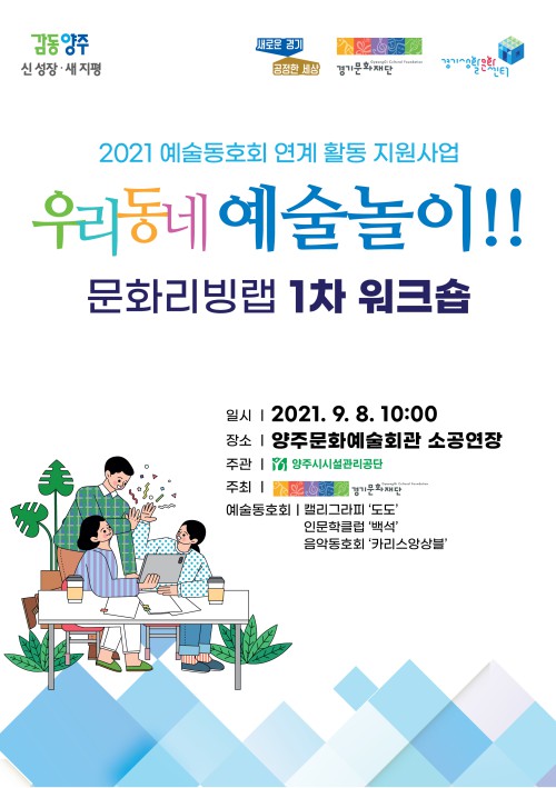 ¾çÁֽýü³°ü¸®°ø´Ü(ÀÌ»çÀå ÀÌÀçÈ£)Àº ¾çÁÖ¹®È¿¹¼úȸ°ü ¼Ò°ø¿¬Àå¿¡¼ °æ±â¹®ÈÀç´ÜÀÌ ÁÖÃÖÇÏ°í ¾çÁֽýü³°ü¸®°ø´ÜÀÌ ÁÖ°üÇÏ´Â 2021 ¿¹¼úµ¿È£È¸ ¿¬°è Ȱµ¿ Áö¿ø »ç¾÷ <¿ì¸®µ¿³× ¿¹¼ú³îÀÌ!!> ¹®È¸®ºù·¦ ¿öÅ©¼óÀ» ÇʵηΠº»°ÝÀûÀÎ »ç¾÷À» ½ÃÀÛÇÑ´Ù°í ¹àÇû´Ù.