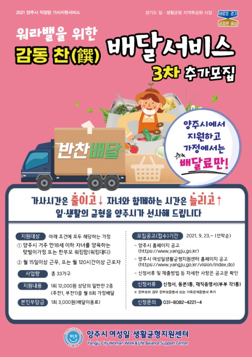 ½Ã °ü°èÀÚ´Â “±Ù·ÎȰµ¿°ú ÀÚ³à¾çÀ°ÀÇ º´ÇàÀ¸·Î ¹Ù»Û Á÷À帾·´ëµð °¡Á¤ÀÇ °Ç°ÇÑ ½Ä»ýȰ Áö¿øÀ» À§ÇØ »ç¾÷ Âü¿©ÀÚ¸¦ Ãß°¡ ¸ðÁýÇÑ´Ù”¸ç “À̹ø ¼ºñ½º¸¦ ÅëÇØ Á÷À帾µéÀÌ °Ç°ÇÑ È¯°æ¿¡¼ ¾ÆÀ̸¦ ¾çÀ°Çϰí ÀÏ·°¡Á¤ ¾ç¸³À» ÅëÇÑ »îÀÇ ÁúÀ» ³ôÀÏ ¼ö ÀÖµµ·Ï ÃÖ¼±À» ´ÙÇϰڴٔ°í ¹àÇû´Ù.
