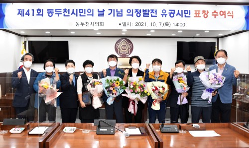 µ¿µÎõ½ÃÀÇȸ(ÀÇÀå Á¤¹®¿µ)´Â 7ÀÏ ½ÃÀÇȸ º»È¸ÀÇÀå¿¡¼ ‘Á¦41ȸ µ¿µÎõ½Ã¹ÎÀÇ ³¯’À» ¸Â¾Æ ³²´Ù¸¥ ¾ÖÇâ½É°ú ºÀ»çÁ¤½ÅÀ¸·Î ¼Ö¼±ÇÏ¿© ¸ð¹üÀÌ µÈ ÀÇÁ¤¹ßÀü À¯°ø½Ã¹Î 8¸í¿¡°Ô ǥâÀåÀ» ¼ö¿©Çß´Ù.