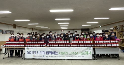 À̹ø Çà»ç´Â ¾çÁֽà °ü³»³óÇù ÇùÂù°ú ³ó°¡ÁֺθðÀÓ¿¡¼ »ý°³ó»ç¿Í µþ±âÀë °¡°ø·ÆÇ¸Å »ç¾÷À» ÅëÇÑ ¼öÀͱÝÀ» Àç¿øÀ¸·Î »ç¶ûÀÇ °íÃßÀå(2kg) 300¿©°³¸¦ ´ã¾Æ ¾çÁֽà ¿ä¾ç½Ã¼³°ú ºÒ¿ìÀÌ¿ôµé¿¡°Ô Àü´ÞÇÏ´Â °ÍÀ¸·Î ¸Å³â ½Ç½ÃµÇ°í ÀÖ´Ù.