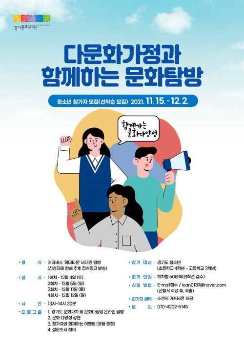 °æ±â¹®ÈÀç´Ü(´ëÇ¥ÀÌ»ç °Çå)Àº Àü±¹ ÃÖ´ë ´Ù¹®ÈÁö¿ªÀÎ °æ±âµµÀÇ Ã»¼Ò³âµéÀ» ´ë»óÀ¸·Î ¿Â¶óÀÎ ¹®È޹æÀ» ÁøÇàÇÑ´Ù.