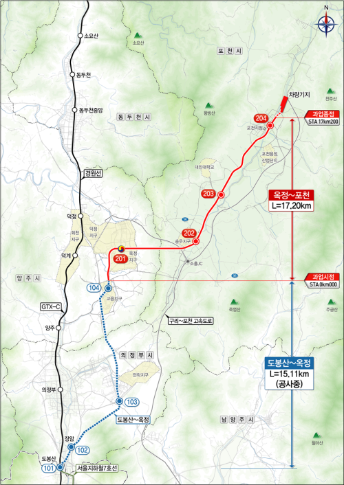 ‘¿ÁÁ¤~Æ÷õ ±¤¿ªÃ¶µµ»ç¾÷’Àº µµºÀ»ê~¿ÁÁ¤ ±¤¿ªÃ¶µµ Á¾Á¡ºÎÀÎ ¾çÁÖ °íÀ¾Áö±¸¿¡¼ Æ÷õ½Ã ±º³»¸éÀ» ¿¬°áÇÏ´Â ÃÑ ¿¬Àå 17.2kmÀÇ Ã¶µµ¸¦ °Ç¼³ÇÏ´Â °ÍÀ¸·Î, °æ±â ºÏµ¿ºÎÁö¿ª µµ¹ÎµéÀÇ ¿À·£ ¼÷¿ø»ç¾÷ÀÌ´Ù.