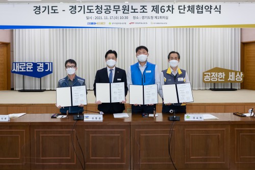 ¿Àº´±Ç °æ±âµµÁö»ç ±ÇÇÑ´ëÇà°ú °¼øÇÏ °æ±âµµÃ»°ø¹«¿ø³ëµ¿Á¶ÇÕ À§¿øÀå, À±¼®Èñ Àü±¹°ø¹«¿ø³ëµ¿Á¶ÇÕ °æ±âµµÃ»ÁöºÎÀå, ¹é½ÂÁø °æ±âµµÅëÇÕ°ø¹«¿ø³ëµ¿Á¶ÇÕ À§¿øÀåÀº 17ÀÏ °æ±âµµÃ» Á¦1ȸÀǽǿ¡¼ Á¦6Â÷ ´ÜüÇù¾à¼¿¡ ¼¸íÇß´Ù.