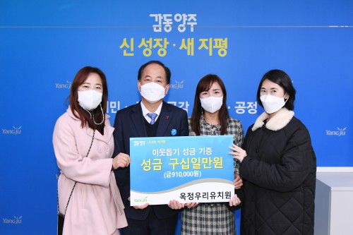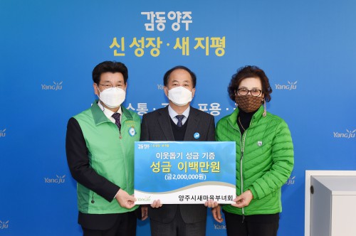 Áö³ 23ÀÏ »õ¸¶À»ÁöµµÀÚ ¾çÁÖ½ÃÇùÀÇȸ(ȸÀå ÀÌÁ¾¿ë)¿Í ¾çÁֽûõ¸¶À»ºÎ³àȸ(ȸÀå ¹Ú¼øÈñ)¿¡¼ Çö±Ý 100¸¸¿ø°ú 200¸¸¿øÀ» °¢°¢ ±âºÎÇß°í Áö³ 21ÀÏ ´ëÇѹα¹»óÀ̱º°æÈ¸(ȸÀå À¯À»»ó)¿¡¼ ¹é¹Ì 10kg 200Æ÷(620¸¸¿ø »ó´ç), ¿ÁÁ¤¿ì¸®À¯Ä¡¿ø(¿øÀå ¹ÚÇö¼÷)¿¡¼ Çö±Ý 91¸¸¿øÀ» ±âŹÇß´Ù.