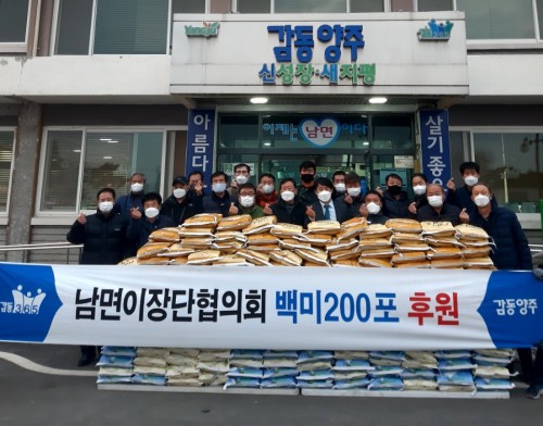¾çÁֽà ³²¸é ÀÌÀåÇùÀÇȸ(ȸÀå ½ÅÇö¹®)´Â Áö³ 29ÀÏ ³²¸éÇàÁ¤º¹Áö¼¾Å͸¦ ¹æ¹®ÇØ ¾î·Á¿î ÀÌ¿ôÀ» µ½±â À§ÇÑ ¹é¹Ì(10kg) 200Æ÷¸¦ ±âºÎÇß´Ù.