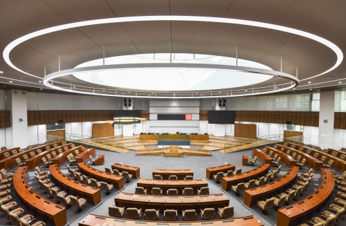 ¸ÕÀú, ÀÇȸÀÇ ‘½ÉÀå’À¸·Î ÀÏÄþîÁö´Â º»È¸ÀÇÀåÀº À¯¸®µ¼°ú À¯¸®º®Ã¼¸¦ ÅëÇØ ‘Åõ¸íÇÑ ÀÇȸ’·Î ±¸ÇöµÆ´Ù. µµ¹Î ´©±¸³ª ½±°Ô Á¢±ÙÇØ ³»ºÎ¸¦ µé¿©´Ùº¼ ¼ö ÀÖ´Â ±¸Á¶´Ù. ƯÈ÷, µ¼ À§Æí 4Ãþ¿¡ ‘½Ç¿Ü±¤Àå’À» Á¶¼ºÇØ µµ¹ÎÀÌ º»È¸ÀÇÀå ²À´ë±â¿¡ ¼¼ ¾Æ·¡¸¦ ³»·Á´Ùº¼ ¼ö ÀÖµµ·Ï ÇÔÀ¸·Î½á ‘Å»±ÇÀ§’¶ó´Â ¹ÎÁÖÀû °¡Ä¡¸¦ »ó¡ÈÇß´Ù. À̰è»ï ÀÇȸ»ç¹«Ã³ÀåÀº “º»È¸ÀÇÀåÀÇ °³¹æÇü ÀÇ»ç´ç ±¸Á¶´Â µ¶ÀÏ µî À¯·´ÀÇȸ°¡ Ãß±¸ÇÏ´Â ¹æÇâÀ» ¹Ý¿µÇÑ °á°ú”¶ó¸ç “¹ÎÀǸ¦ ¼ö·ÅÇϰí, µµ¹Î¿¡°Ô ÇÑ °ÉÀ½ ´õ ´Ù°¡°¡´Â ÀÇȸ°¡ µÇ°Ú´Ù´Â Àǹ̔¶ó°í ¼³¸íÇß´Ù.