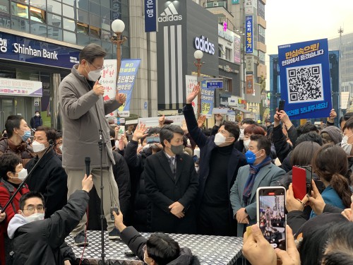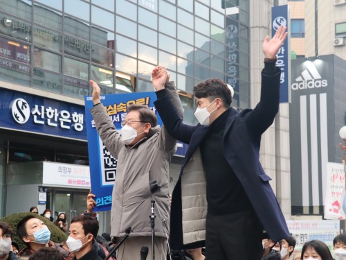 ÀÌÀç¸í ´õºÒ¾î¹ÎÁÖ´ç ´ë¼±È帰¡ 25ÀÏ ÀÇÁ¤ºÎ Çູ·Î ½Ã¹Î±¤ÀåÀ» ¹æ¹®ÇØ, ÀÇÁ¤ºÎÀÇ 7´ë °ø¾à ¹ßÇ¥¿Í ÇÔ²² ÁöÁö¸¦ È£¼ÒÇß´Ù.