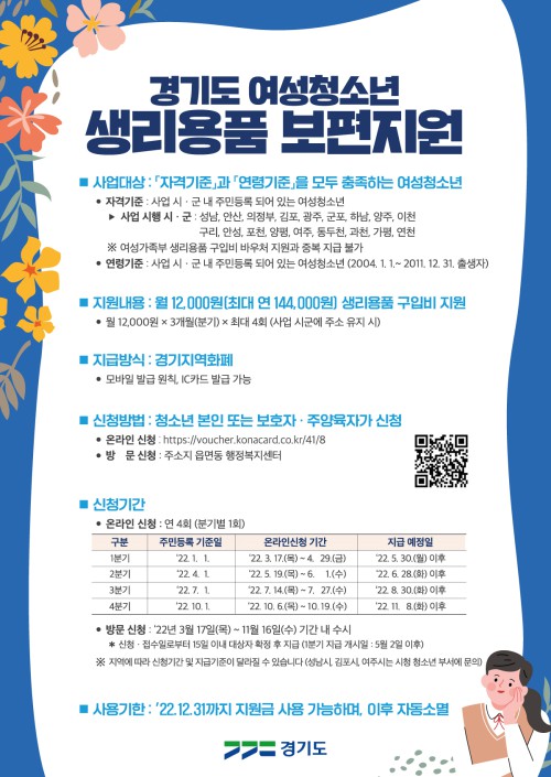 ‘¿©¼ºÃ»¼Ò³â »ý¸®¿ëǰ º¸ÆíÁö¿ø »ç¾÷’Àº °æ±âµµ¿¡¼ ÁøÇàÇÏ´Â »ç¾÷À¸·Î ¿ÃÇØ ¾çÁֽð¡ »õ·Ó°Ô Âü¿©ÇÏ¸é¼ º¸Æíº¹Áö ½ÇÇö¿¡ ÇÑ °ÉÀ½ ´õ ³ª¾Æ°¡°í ÀÖ´Ù.