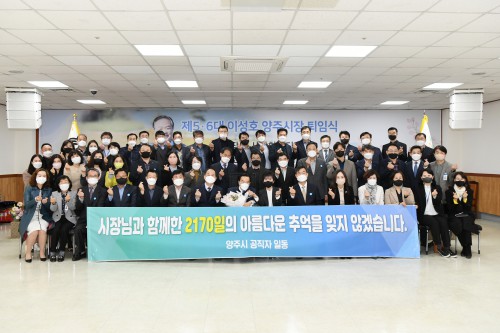 ÀÓ±â 3°³¿ù¿©¸¦ ³²±â°í »çÀÓÇÏ´Â À̼ºÈ£ ¾çÁÖ½ÃÀåÀÌ 24ÀÏ ÅðÀÓ½ÄÀ» ³¡À¸·Î 6³â °£ÀÇ ½ÃÀå ¾÷¹«¸¦ ¸¶¹«¸®ÇÑ´Ù.