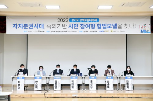 °æ±âµµÀÇȸ °Ç¼³±³ÅëÀ§¿øÈ¸ ¹ÚÅÂÈñ À§¿ø(´õºÒ¾î¹ÎÁÖ´ç, ¾çÁÖ1)ÀÌ ÁÂÀåÀ» ¸ÃÀº 'ÀÚÄ¡ºÐ±Ç½Ã´ë, ¼÷ÀDZâ¹Ý ½Ã¹Î Âü¿©Çü Çù¾÷¸ðµ¨À» ã´Ù!' Åä·Ðȸ°¡ 25ÀÏ ¾çÁֽà ¿ÁÁ¤È£¼ö µµ¼°ü 3Ãþ¿¡¼ °³ÃֵƴÙ. °æ±âµµ¿Í °æ±âµµÀÇȸ°¡ °øµ¿ ÁÖÃÖÇÑ ‘2022 °æ±âµµ »ó¹Ý±â Á¤Ã¥Åä·Ð ´ëÃàÁ¦’ÀÇ ÀÏȯÀ¸·Î, À̹ø Åä·Ðȸ´Â ÀÚÄ¡ºÐ±Ç½Ã´ë, ¼÷ÀDZâ¹Ý ½Ã¹Î Âü¿©Çü Çù¾÷¸ðµ¨ Ž»ö °ü·Ã¿¡ ´ëÇØ ³íÀÇÇÒ Çʿ伺ÀÌ ´ëµÎÇÔ¿¡ µû¶ó °³ÃֵǾú´Ù.