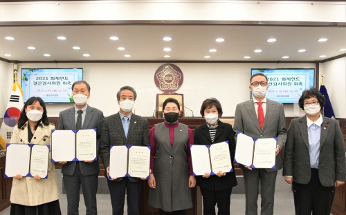 µ¿µÎõ½ÃÀÇȸ(ÀÇÀå Á¤¹®¿µ)´Â 28ÀÏ º»È¸ÀÇÀå¿¡¼ 2021ȸ°è¿¬µµ µ¿µÎõ½Ã °á»ê°Ë»çÀ§¿ø 5¸íÀ» À§ÃËÇß´Ù.