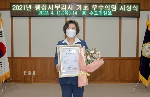 ÀÇÁ¤ºÎ½ÃÀÇȸ ±è¿µ¼÷ ÀÇ¿øÀº 7ÀÏ ¼öµµ±ÇÀϺ¸»ç ÁÖ°ü '2021³â ÇàÁ¤»ç¹«°¨»ç ±âÃÊ¿ì¼öÀÇ¿ø ½Ã»ó½Ä'¿¡¼ ¿ì¼öÀÇ¿ø»óÀ» ¹Þ¾Ò´Ù.