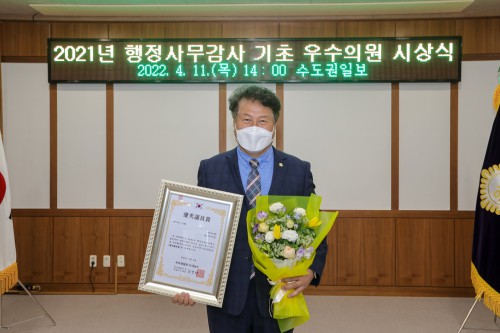 ÀÇÁ¤ºÎ½ÃÀÇȸ ¾ÈÁöÂù ÀÇ¿øÀº 7ÀÏ ¼öµµ±ÇÀϺ¸»ç ÁÖ°ü '2021³â ÇàÁ¤»ç¹«°¨»ç ±âÃÊ¿ì¼öÀÇ¿ø ½Ã»ó½Ä'¿¡¼ ¿ì¼öÀÇ¿ø»óÀ» ¹Þ¾Ò´Ù.