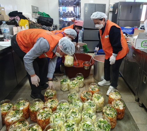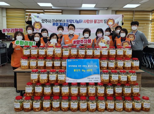 À̳¯ ÄÚÄ¡ 12¸íÀº ¹«, ¹èÃß, ÂÊÆÄ, ¸¶´Ã µîÀ» ±¹³»»ê Àç·á·Î Á÷Á¢ ¼¼Ã´ÇÏ°í ¾ç³ä°ú Æ÷Àå µîÀ» ÇÏ¸ç ¼Õ¼ö 180°³ÀÇ ¹°±èÄ¡¸¦ ´ã°¡ 4°³ ±Ç¿ªÀÇ ³ª´®ÅÍ »ç¶ûÀÇ ÀüÈ´ë»óÀÚÀÎ µ¶°Å³ëÀο¡°Ô Àü´ÞÇÏ¸ç µû¶æÇÑ Á¤À» ³ª´³´Ù.