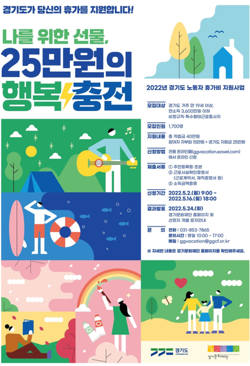 °æ±âµµ°¡ ÈÞ°¡ ¿©°ÇÀÌ ¿¾ÇÇÑ ºñÁ¤±ÔÁ÷ ³ëµ¿ÀÚÀÇ ÈÞ½Ä±Ç Á¦°í¸¦ À§ÇØ ¿ÃÇØ ÃÑ 4¾ï2,500¸¸ ¿øÀÇ ¿¹»êÀ» µé¿© ‘2022³â ³ëµ¿ÀÚ ÈÞ°¡ºñ Áö¿ø»ç¾÷’À» ÃßÁøÇÑ´Ù°í 19ÀÏ ¹àÇû´Ù.