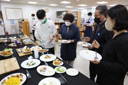 Çѱ¹¿Ü½Ä°í Á¶¸®±³»ç 2ÀÎÀ¸·Î ±¸¼ºµÈ ½É»çÀ§¿ø´ÜÀº Á¶¸®°úÁ¤, ¸Þ´º ±¸¼º, ÀÛǰ¼º, »óǰ¼º, âÀǼº, ½Ä¿ë°ïÃæ Ȱ¿ë¼º µîÀ» Á¾ÇÕÀûÀ¸·Î Æò°¡Çß´Ù.