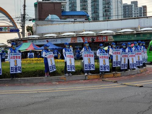 ÃÖ¿ë´ö ´õºÒ¾î¹ÎÁÖ´ç µ¿µÎõ½ÃÀå Èĺ¸¿Í ÀÌÀαÔ(Á¦1¼±°Å±¸), ±èµ¿Ã¶(Á¦2¼±°Å±¸) µµÀÇ¿ø Èĺ¸, ±èÀç¼ö·±èµ¿¿ø(°¡¼±°Å±¸), ÀÓÇö¼÷·¹ÚÀιü(³ª¼±°Å±¸), ÀÌÀ¯È(ºñ·Ê´ëÇ¥) ½ÃÀÇ¿ø È帴 5¿ù20ÀÏ ¿ÀÈÄ 4½Ã Å«½ÃÀå ·ÎÅ͸®¿¡¼ 6.1 Áö¹æ¼±°Å 2Â÷ ÃâÁ¤½ÄÀ» °®°í ¾Ð½ÂÀ» ´ÙÁüÇß´Ù.