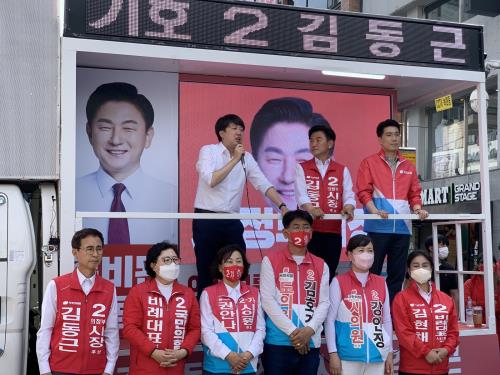 ÀÌÁؼ® ´ëÇ¥¿Í ±èµ¿±Ù È帴 À̳¯ ÇÔ²² Çູ·Î¸¦ °ÉÀ¸¸ç ½Ã¹Îµé¿¡°Ô ÁöÁö¸¦ È£¼ÒÇß´Ù.