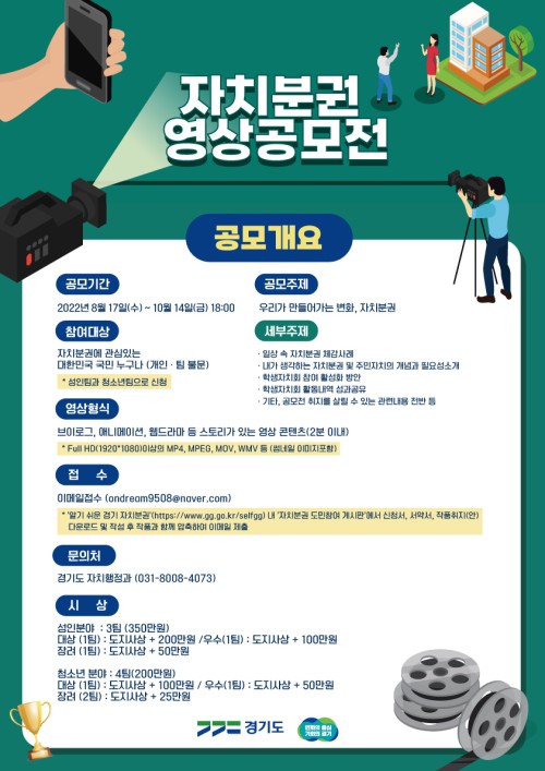°æ±âµµ°¡ ÀÚÄ¡ºÐ±Ç ÀνÄÈ®»ê°ú Âü¿© Ȱ¼ºÈ¸¦ À§ÇØ 10¿ù 14ÀϱîÁö ‘2022³â °æ±âµµ ÀÚÄ¡ºÐ±Ç ¿µ»ó°ø¸ðÀü’À» °³ÃÖÇÑ´Ù°í 18ÀÏ ¹àÇû´Ù.