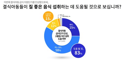 µµ¹Î 83%´Â À̹ø °á½Ä¾Æµ¿ ±Þ½Ä´Ü°¡ ÀλóÀ¸·Î °á½Ä¾Æµ¿µéÀÌ Áú ÁÁÀº À½½ÄÀ» ¼·ÃëÇÏ´Â µ¥¿¡ ‘µµ¿òÀÌ µÉ °Í’À¸·Î ³»´ÙºÃ´Ù. ‘µµ¿òÀÌ µÇÁö ¾ÊÀ» °Í’À̶õ ÀÀ´äÀº 15%¿¡ ±×ÃÆ´Ù.