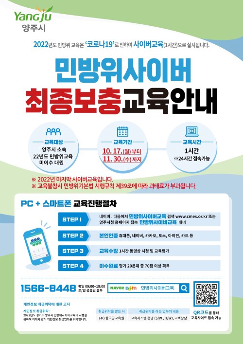 ±³À°´ë»óÀÚ´Â ¾çÁÖ½Ãû ȨÆäÀÌÁö ¹è³Ê ¶Ç´Â '¹Î¹æÀ§ »çÀ̹ö±³À°' ȨÆäÀÌÁö¸¦ ÅëÇØ ±³À°À» ¼ö°ÇÒ ¼ö ÀÖ´Ù.