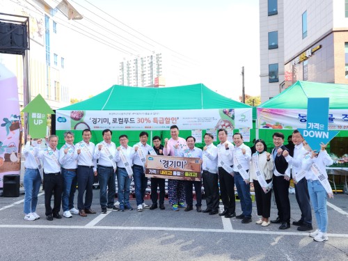 ±è¼º³² ³óÁ¤ÇؾçÀ§¿øÀåÀ» ºñ·ÔÇÏ¿© °æ±âµµ ÀÇȸ ³óÁ¤ÇؾçÀ§¿øÈ¸ ÀÇ¿øµéÀº ‘°æ±â¹Ì ÆÈ¾ÆÁÖ±â’, ‘³ó°¡¼Òµæ º¸Àå’ µî ¾î±ú¶ì¸¦ ºÎÂøÇϰí, °æ±â¹Ì ÆÇ¸ÅÈ®»ê¿¡ ±â¿©ÇϰíÀÚ Àü´ÜÁö ¹èºÎ µî °æ±â¹Ì ¿ì¼ö¼º ¹× °æ±â¹Ì ÇÒÀÎÇà»ç È«º¸¸¦ À§ÇÑ ÆÛÆ÷¸Õ½º¿¡ µ¿ÂüÇÏ¿´´Ù.