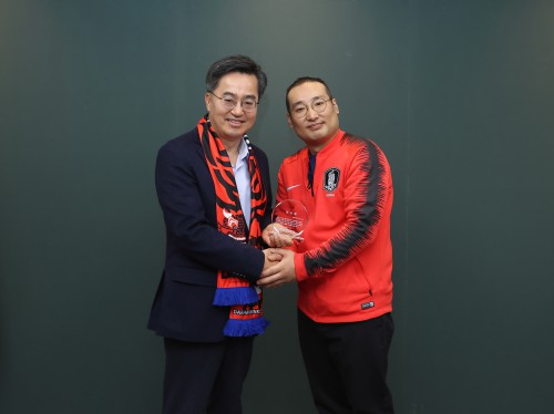 ºÓÀº¾Ç¸¶¿Í 2022 īŸ¸£¿ùµåÄÅ ´ëÇѹα¹ ´ëÇ¥ÆÀÀÇ ½Ã¹ÎÀÀ¿øÀüÀ» °øµ¿ÁÖ°üÇÑ ±èµ¿¿¬ °æ±âµµÁö»ç°¡ ºÓÀº¾Ç¸¶ °æ±âÁöºÎ·ÎºÎÅÍ °¨»çÆÐ¸¦ ¹Þ¾Ò´Ù.