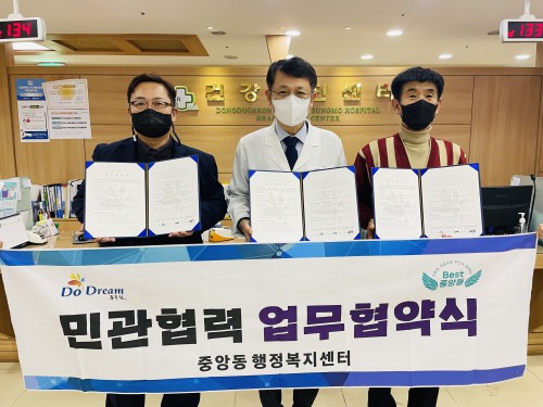 µ¿µÎõ½Ã Áß¾Óµ¿ ÇàÁ¤º¹Áö¼¾ÅÍ¿Í Áö¿ª»çȸº¸ÀåÇùÀÇü(°øµ¿À§¿øÀå °æ±Ôȯ), Áß¾Ó¼º¸ðº´¿ø(¿øÀå À±¼®Áø)Àº Áö³ 23ÀÏ ÀǷẹÁö »ç°¢Áö´ë ÇØ¼Ò¸¦ À§ÇÑ ¾÷¹« Çù¾àÀ» ü°áÇß´Ù.