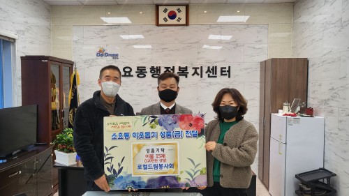 Æò¼Ò ¹Ø¹ÝÂù Àü´Þ, ÁÖ°Åȯ°æ °³¼± µî ´Ù¾çÇÑ ºÀ»ç·Î ÀÌ¿ô»ç¶û ½Çõ¿¡ ¾ÕÀå¼°í ÀÖ´Â ·ÎÄõ帲ºÀ»çȸ´Â À̳¯ Ãß¿î °Ü¿ïÀ» º¸³¾ Ãë¾à°èÃþ¿¡ Àß Àü´ÞÇØ ´Þ¶ó¸ç Æ÷±ÙÇÑ ÀÌºÒ 15ä(120¸¸¿ø »ó´ç)¸¦ ±âŹÇß´Ù.