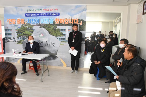 ¹ÚÇü´ö µ¿µÎõ½ÃÀåÀº ÃëÀÓ ÀÌÈÄ 1¸¸¿© ¸íÀÇ ½Ã¹ÎÀ» Á÷Á¢ ¸¸³ª ½ÃÁ¤ ¿î¿µ ¹æÇâ°ú ÁßÁ¡ ÃßÁø°úÁ¦¸¦ ¼³¸íÇϰí ÀǰßÀ» µé¾úÀ¸¸ç »çȸ´ÜüÀå °£´ãȸ¸¦ ½ÃÀÛÀ¸·Î ±â¾÷ÀÎ, µµ½ÃÀç»ý ÁÖ¹ÎÇùÀÇü, ³ëÀηÀå¾ÖÀκ¹Áö°ü, ÀüÅë½ÃÀå ÁýÁßÈ£¿ì Ãë¾àÁö¿ª, ÁÖ¿ä °Ç¼³»ç¾÷ ÇöÀå µî ±¸¼®±¸¼®À» ´Ù´Ï¸ç ½Ã°¡ óÇÑ Çö¾È¹®Á¦¸¦ ÆÄ¾ÇÇÏ°í ±Ùº»ÀûÀÎ ¹®Á¦ ÇØ°áÀ» À§ÇÑ ºñÀüÀ» Á¦½ÃÇß´Ù.