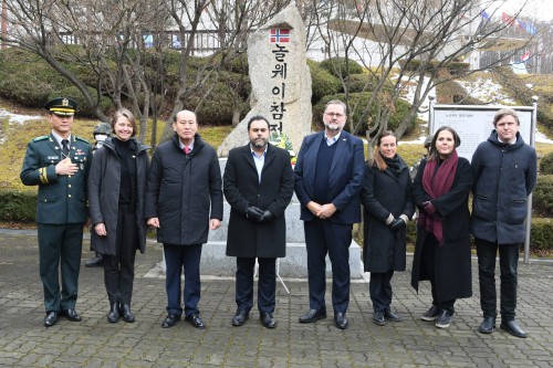 ¿ì¸®³ª¶ó ±¹È¸ÀÇ °ø½ÄÃÊûÀ¸·Î ¹æÇÑÇÑ ³ë¸£¿þÀÌ ±¹È¸ÀÇÀå°ú ¹æÇÑ´ÜÀº ¾ç±¹ °ü°èÀÇ ¿ª»çÀû Àǹ̸¦ µÇ»õ±â°íÀÚ 6·25 ÀüÀï ´ç½Ã ³ë¸£¿þÀ̱ºÀÌ È°¾àÇß´ø µ¿µÎõ½Ã¸¦ ¹æ¹®Çß´Ù.