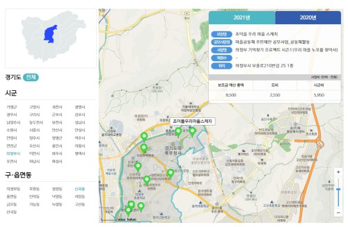 °æ±âµµ°¡ 20ÀϺÎÅÍ µµ³» ¸¶À»°øµ¿Ã¼ÀÇ °¢Á¾ Ȱµ¿ Á¤º¸¸¦ ±×·¡ÇÁ³ª, Áöµµ °°Àº ½Ã°¢È ÀÚ·á·Î ÇÑ ¹ø¿¡ »ìÆìº¼ ¼ö ÀÖ´Â ‘°æ±âµµ ¸¶À»°øµ¿Ã¼ µ¥ÀÌÅÍ ¾ÆÄ«À̺ê’(ÀÌÇÏ °æµ¥¾Æ) ¼ºñ½º¸¦ ½ÃÀÛÇÑ´Ù.