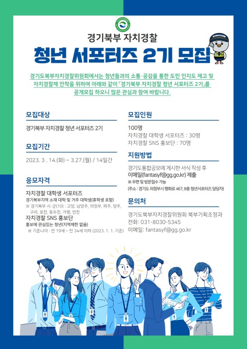 °æ±âµµºÏºÎÀÚÄ¡°æÂûÀ§¿øÈ¸´Â ÀÚÄ¡°æÂû¿¡ ´ëÇÑ È«º¸¿Í Ä¡¾ÈÄ·ÆäÀÎ µî ÇöÀå Ȱµ¿À» ÇÒ ‘Á¦2±â °æ±âºÏºÎ ÀÚÄ¡°æÂû û³â ¼Æ÷ÅÍÁî’(ÀÌÇÏ ¼Æ÷ÅÍÁî) 100¸íÀ» ¿À´Â 27ÀϱîÁö °ø°³ ¸ðÁýÇÑ´Ù.