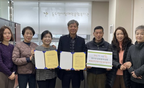 µ¿µÎõ½ÃÀå¾ÖÀÎÁ¾ÇÕº¹Áö°ü(°üÀå À±´ëÁß)Àº Áö³ 15ÀÏ µ¿µÎõ½Ã¹®È¿ø¿©¼ºÈ¸(ȸÀå ±è´öÈñ)¿Í °èÀý±èÄ¡ Áö¿ø»ç¾÷À» ÁøÇàÇϱâ À§ÇØ ¾÷¹«Çù¾àÀ» ü°áÇß´Ù.