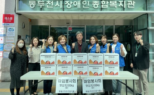 µ¿µÎõ½ÃÀå¾ÖÀÎÁ¾ÇÕº¹Áö°ü(°üÀå À±´ëÁß)Àº Áö³ 19ÀÏ ¢ß¿ì¸®Áý½ÄǰÀ¸·ÎºÎÅÍ ¸À±èÄ¡ 100§¸À» ÈÄ¿ø¹Þ¾Ò´Ù. ¢ß¿ì¸®Áý½ÄǰÀº Áý´Ü±Þ½Ä ±èÄ¡Àü¹® Á¦Á¶¾÷ü·Î ±¹³»»ê ±èÄ¡¸¦ Á÷Á¢ »ý»êÇÏ¿© À¯Åë±îÁö °ü¸®ÇÏ´Â ±â¾÷ÀÌ´Ù.