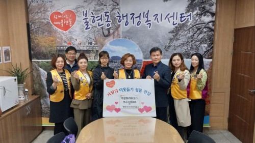 ÇÑÆí, ±è¿ìÁ¤ ºÒÇöµ¿ÀåÀº “¾î·Á¿î ÀÌ¿ô¿¡ °ü½ÉÀ» °®°í ÈÄ¿ø¿¡ µ¿ÂüÇØÁּż °¨»çµå¸°´Ù”¸ç, “»ç¶ûÀÌ ´ã±ä ¸À±èÄ¡´Â °ü³» Àú¼Òµæ ¾î¸£½Å 9°¡±¸¿¡ Àü´ÞÇÒ ¿¹Á¤À̸ç, ¾î·Á¿î ÀÌ¿ô¿¡°Ô ¶óÀ̿½ºÅ¬·´ÀÇ µû¶æÇÑ ¸¶À½±îÁö ÀüÇØ Áö±æ ¹Ù¶õ´Ù.”°í ¸»Çß´Ù.