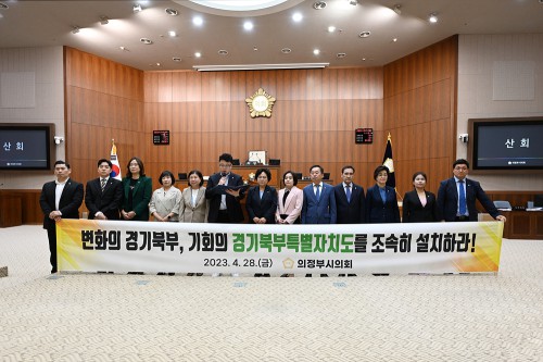ÀÇÁ¤ºÎ½ÃÀÇȸ(ÀÇÀå ÃÖÁ¤Èñ) ÀÇ¿ø 13¸í Àü¿øÀº 28ÀÏ ÀÇÁ¤ºÎ½ÃÀÇȸ º»È¸ÀÇÀå¿¡¼ °æ±âºÏºÎƯº°ÀÚÄ¡µµ ¼³Ä¡ Ã˱¸ ¼º¸í¼¸¦ ¹ßÇ¥Çϰí, ±¹È¸¿Í Á¤ºÎ, °æ±âµµ¿¡ °æ±âºÏºÎƯº°ÀÚÄ¡µµ ¼³Ä¡¸¦ À§ÇÑ Æ¯º°¹ý Á¦Á¤, ½ÇÁúÀûÀÎ Çൿ ¹× ÀüÆøÀûÀÎ Áö¿ø¿¡ ´ëÇØ ÇϳªÀÇ ¸ñ¼Ò¸®¸¦ ³Â´Ù.