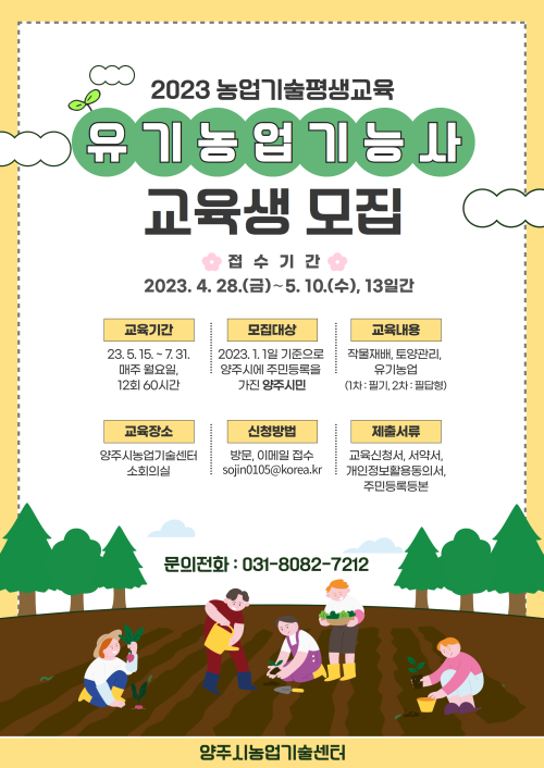 ±âŸ ÀÚ¼¼ÇÑ »çÇ×Àº ³ó¾÷±â¼ú¼¾ÅÍ ³óÃÌÀÚ¿ø°ú ±âȹ±³À°ÆÀ(031-8082-7212)À¸·Î ¹®ÀÇÇÏ¸é ¾È³»¹ÞÀ» ¼ö ÀÖ´Ù.