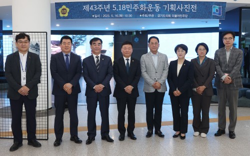 °æ±âµµÀÇȸ ±³¼·´Üü ´õºÒ¾î¹ÎÁÖ´ç(´ëÇ¥ÀÇ¿ø ³²Á¾¼·, ¿ëÀÎ3)´Â 5·18 ¹ÎÁÖȿ 43ÁÖ³âÀ» ¾ÕµÎ°í 16ÀÏ °æ±âµµÃ» 1Ãþ ·Îºñ¿¡¼ “Á¦43ÁÖ³â 5·18 ¹ÎÁÖȿ ±âȹ»çÁøÀü” °³¸·½ÄÀ» °³ÃÖÇß´Ù.