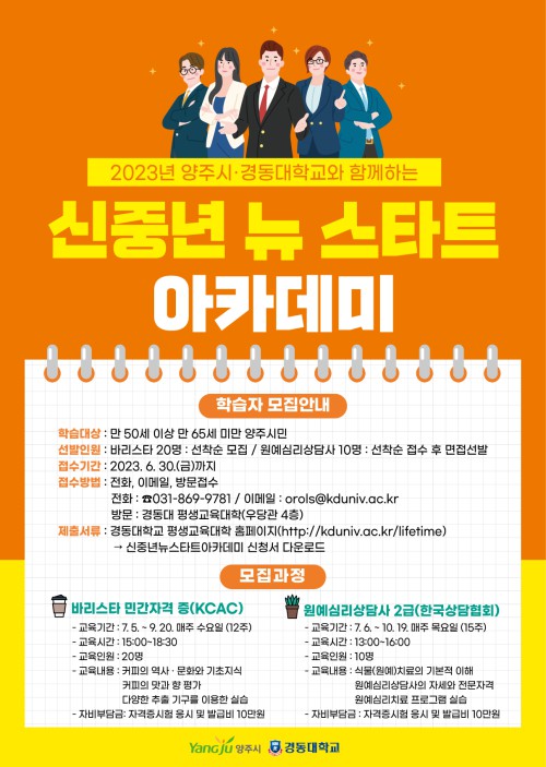 ¾çÁÖ½Ã(½ÃÀå °¼öÇö)´Â ¿À´Â 30ÀϱîÁö °æµ¿´ë¿Í ÇÔ²²‘2023³â ½ÅÁ߳⠴º½ºÅ¸Æ®(New-Start) ¾ÆÄ«µ¥¹Ì’¼ö°»ýÀ» ¸ðÁýÇÑ´Ù.