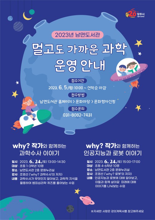 °¢°¢ ÃʵîÇб³ 10¸íÀ» ¼±Âø¼ø ¸ðÁýÇϸç Âü¿©¸¦ ¿øÇÏ´Â ÇлýÀº ³²¸éµµ¼°ü ȨÆäÀÌÁö(https://www.libyj.go.kr/nmlib)¿¡¼ ½Åû °¡´ÉÇÏ´Ù.