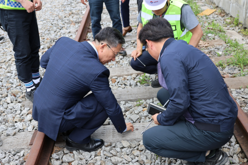 À̳¯ ÇöÀåÁ¡°ËÀº º®Á¦¿ª ÇöÀå»ç¹«½Ç¿¡¼ ±¹°¡Ã¶µµ°ø´Ü ÇöÀå °Ç¼³»ç¾÷°ü¸®´ÜÀåÀ¸·ÎºÎÅÍ ¾÷¹«º¸°í¸¦ ¹Þ°í, ÀÏ¿µ¿ª°ú ¼ÛÃß¿ª ºÎ±ÙÀÇ ¿Ëº®, ½Â°Àå, ¹è¼ö½Ã¼³, ±³·®, ÅͳΠµî ³ë¹Ý°ú ·¹ÀÏ, ħ¸ñ, °Ç³Î¸ñ °³·® µî ±Ëµµ °ø»ç Àü¹ÝÀ» »ìÆìº¸¾Ò´Ù. ÇöÀå»ç¾÷´ÜÀåÀº “±Ëµµ°³·®Àº `24³â 4¿ù, ³ë¹Ý°³·®Àº `24³â 6¿ù ¿Ï°øÀ» ¸ñÇ¥·Î °ø»ç°¡ ¼øÁ¶·Ó°Ô ÁøÇàµÇ°í ÀÖÀ¸¸ç, öÀúÇÑ ¾ÈÀü°ü¸®¿Í Áö¼ÓÀûÀΠǰÁú°ü¸®·Î ½Ã¹ÎµéÀÌ Æí¾ÈÇÏ°Ô ±³¿Ü¼±À» ¾Ö¿ëÇÒ ¼ö ÀÖµµ·Ï ÃÖ¼±À» ´ÙÇϰڴٔ¶ó°í ¸»Çß´Ù.