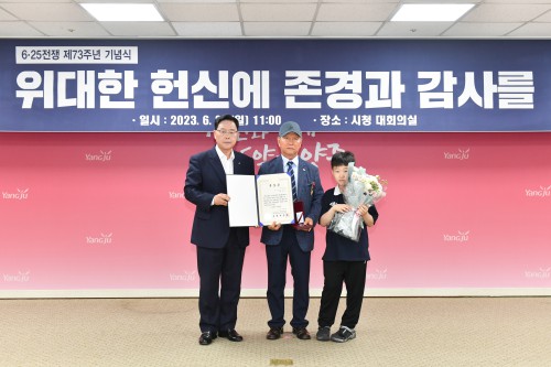 ¾çÁÖ½Ã(½ÃÀå °¼öÇö)´Â 25ÀÏ ½Ãû ´ëȸÀǽǿ¡¼ 6.·25 ÀüÀïÀÌ ³²±ä ¿ª»çÀû ±³ÈÆÀ» µÇ»õ±â°í È£±¹¿µ·É°ú ÂüÀü¿ë»çÀÇ ¼þ°íÇÑ Á¤½ÅÀ» ±â¸®´Â 6·25ÀüÀï Á¦73Áֳ⠱â³ä½ÄÀ» °³ÃÖÇß´Ù.