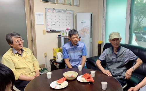 ÃÊ¿©¸§ÀÌÁö¸¸ Æø¿°À¸·Î ÀÎÇØ ÁöÄ£ ¾î¸£½ÅµéÀ» À§ÇØ °ü³» °æ·Î´ç 11°³¼Ò¸¦ ¹æ¹®ÇÏ¿© °úÀÏÀ» Àü´ÞÇϰí, ¿©¸§Ã¶ ¹«´õÀ§¸¦ À̰ܳ»°í °Ç°À» Àß Ã¬±æ ¼ö ÀÖµµ·Ï ¾ÈºÎ¸¦ È®ÀÎÇß´Ù.