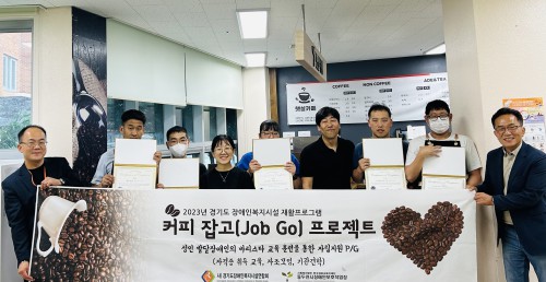 Çѱ¹Àå·Î±³º¹ÁöÀç´Ü µ¿µÎõ½Ã Àå¾ÖÀÎ º¸È£ÀÛ¾÷Àå(¿øÀå À±µ¿ÀÎ)Àº (»ç)°æ±âµµ Àå¾ÖÀκ¹Áö½Ã¼³¿¬ÇÕȸ¿¡¼ ÁÖÃÖÇÑ 2023³â °æ±âµµÀå¾ÖÀκ¹Áö½Ã¼³ ÀçȰÇÁ·Î±×·¥ ´ë»ó¿¡ ¼±Á¤ µÅ “Ä¿ÇÇ Àâ°í(Job Go) ÇÁ·ÎÁ§Æ®”¸¦ ÁøÇàÇßÀ¸¸ç ÈÆ·Ã»ý 5¸íÀÌ ¹Ù¸®½ºÅ¸ ÀÚ°ÝÁõÀ» Ãëµæ Çß´Ù°í ÀüÇß´Ù.
