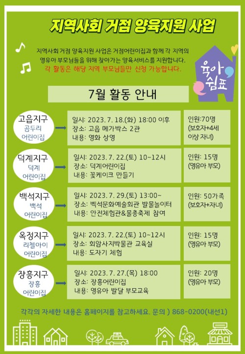 ¼¾ÅÍ´Â ¾çÀ°Á¤º¸ Á¢±Ù¼ºÀÌ ¸Õ °÷À» Áß½ÉÀ¸·Î 5°³ Áö¿ª(¹é¼®À¾, ÀåÈï¸é, ´ö°èµ¿, °íÀ¾µ¿, ¿ÁÁ¤µ¿)¿¡ °ø¸³¾î¸°ÀÌÁý 5°³ ¼Ò¸¦ ‘°ÅÁ¡ ¾î¸°ÀÌÁý’À¸·Î ¼±Á¤ÇØ ‘ºÎ¸ð±³À°’ ÁßÁ¡ Á¦°ø±â°üÀ¸·Î À°¼ºÇÑ´Ù.
