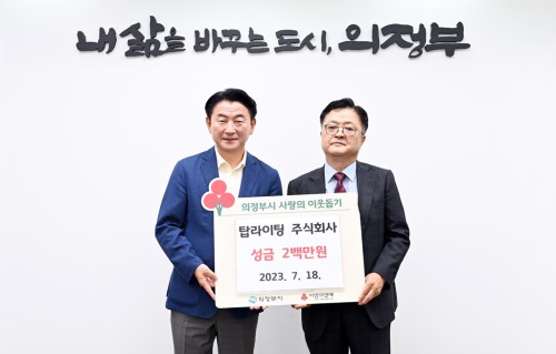 ÀÇÁ¤ºÎ½Ã(½ÃÀå ±èµ¿±Ù)´Â 7¿ù 18ÀÏ Å¾¶óÀÌÆÃ ÁÖ½Äȸ»ç(´ëÇ¥ ±è¼®±Ô)°¡ Àú¼ÒµæÃþÀ» À§ÇÑ ¼º±Ý 200¸¸ ¿øÀ» ±âºÎÇß´Ù°í ¹àÇû´Ù.